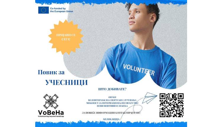 ПОВИК ЗА УЧЕСНИЦИ НА ПРОЕКТОТ Volunteering Beyond Handicaps! Имаш 18-30 години и живееш со некаква попреченост? Или познаваш млад човек со попреченост кој сака да се вклучи, но му треба поттик и поддршка?