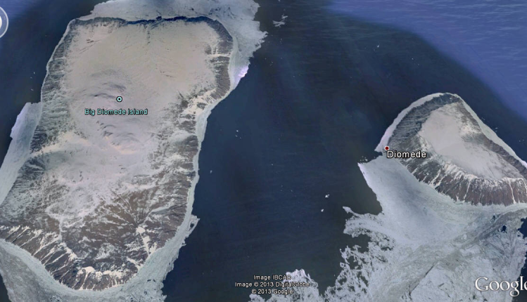 Двата островите Голем и Мал Диомид се оддалечени околу 5 километри, интересно е што поголемиот остров е речиси еден ден пред својот помал сосед (21 час), бидејќи тие се наоѓаат на двете страни од