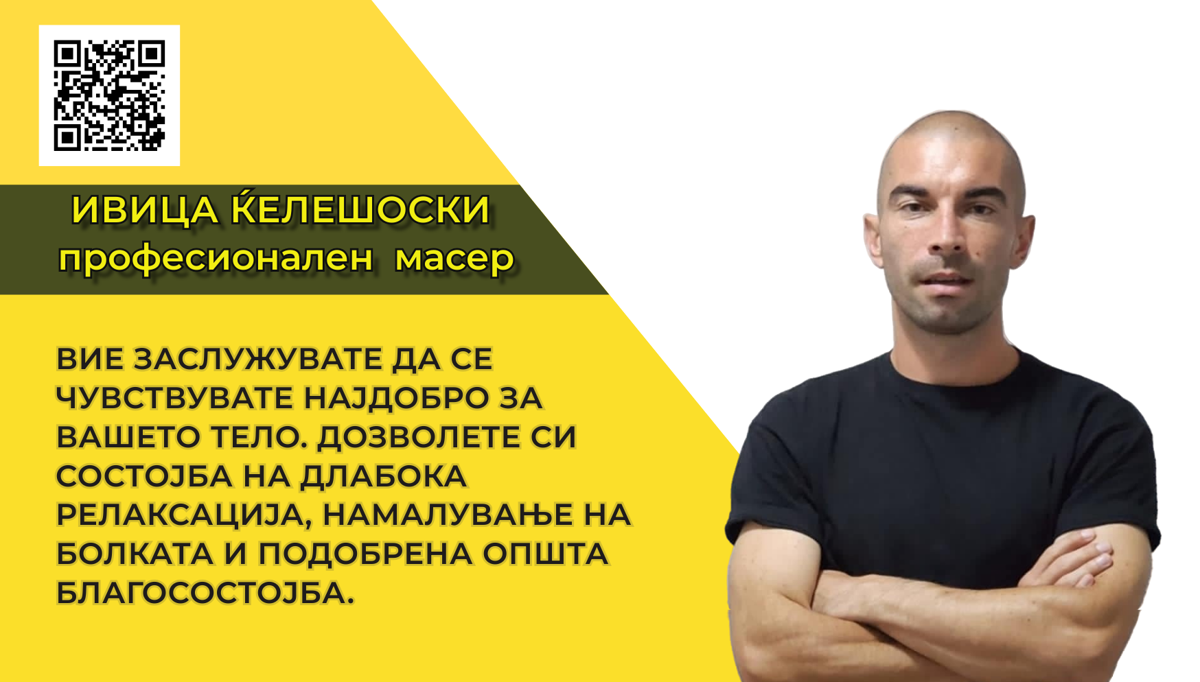 Massage Ivica – физиотерапевтски техничар и масер поседува знаења и вештини за различни видови масажа, нуди: 1. Релакс масажаРелаксирачката масажа е блага и нежна, дизајнирана да го релаксира целото тело преку мазни удари и